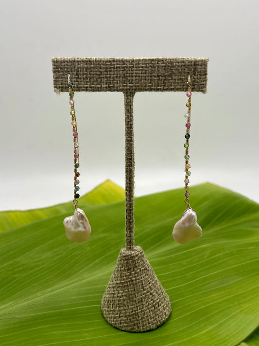 All That Glitters: Baroque Keshi Pearl w/ Watermelon Tourmaline